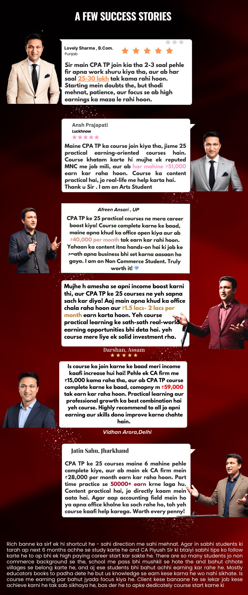 Mera (CA Piyush Gupta) ka maanna hai ki sirf syllabus pura karne se koi earn nahi kar skta hai. Earn karne ki liye sabse jruri hai ye janna ki jo bhi humne sikha he usse kese earn kiya ja skta h. Diamond Club me apko wo sab sikhaya jata he jo actual me market me demand me he. Is coure ke bad senior level accounting job ke liye bhi apply kar sakte he aur apni practice bhi start kar sakte ho.